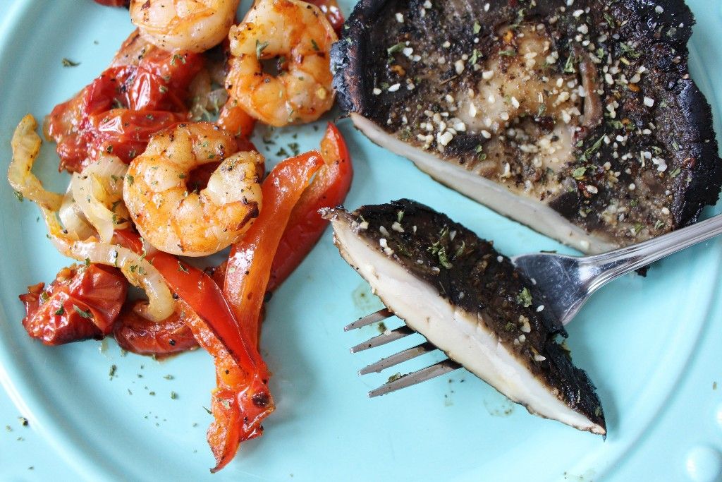 Low Carb Shrimp Diavolo w Portabella Steaks