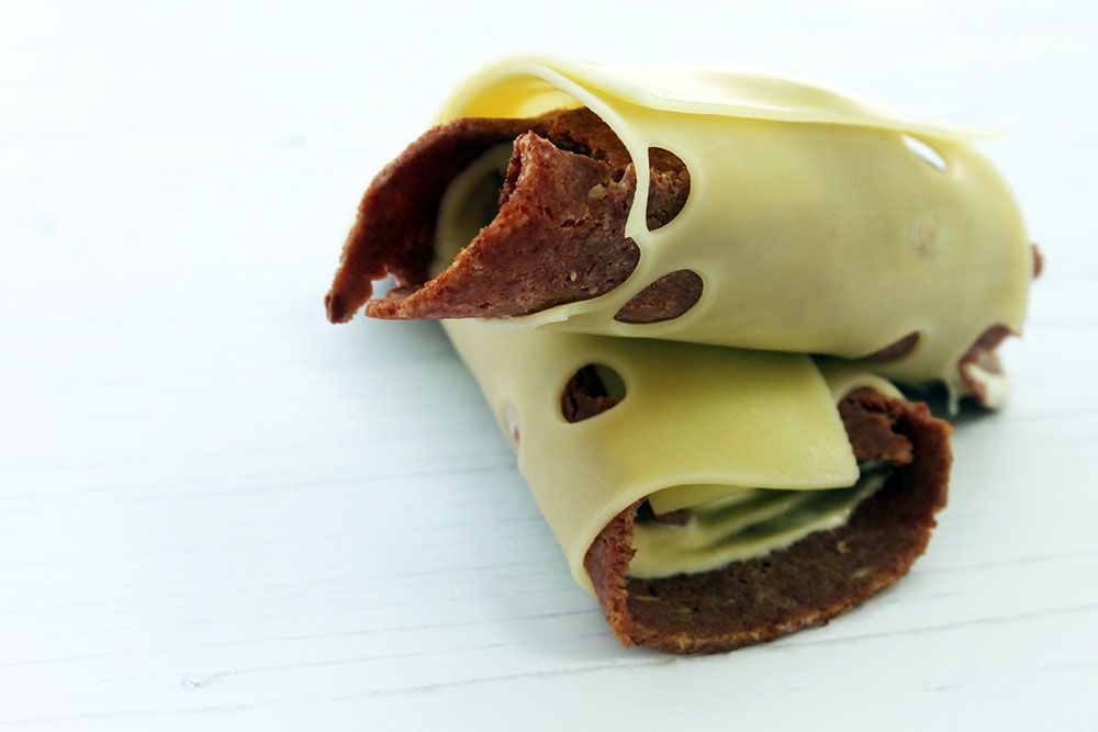 Roll the cheese slice tightly around the fillings, pin with a toothpick to hold if needed.