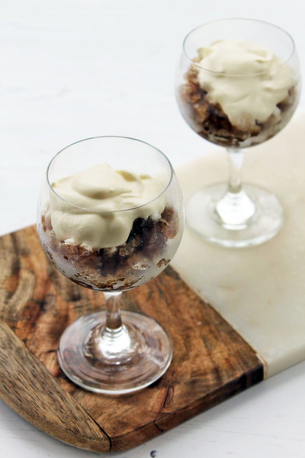 Pour the coffee mixture into a shallow, freezer proof tray and freeze for 40 minutes until ice crystals start to form. Churn the mixture up with a fork, breaking the ice apart and freeze for a further 20 minutes. Remove from the freezer and loosely break up the ice again, then freeze for a final 20 minutes.Step 3