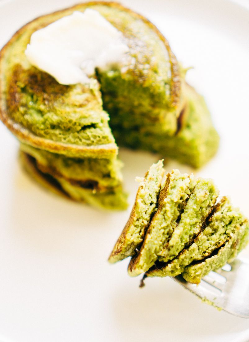 These pancakes are full of delicious, antioxidant-rich matcha powder which gives them a beautiful green color. Serve with a generous amount of butter on top and sugar-free syrup.