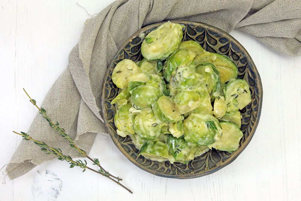 This simple recipe for creamed sprouts is rich with heavy cream and just a hint of aromatic thyme.