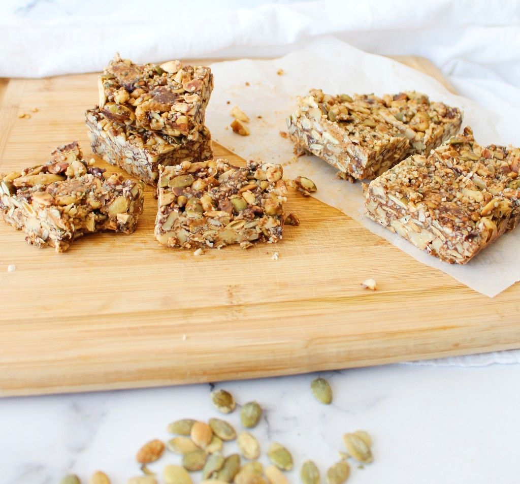 Pepitas are just another name for pumpkin seeds. Pepitas will be shelled and come either salted or unsalted. Using salted pepitas in this recipe will help add flavor to the protein bars. Pepitas also have a variety of trace minerals and vitamins, so they’re very healthy for you.