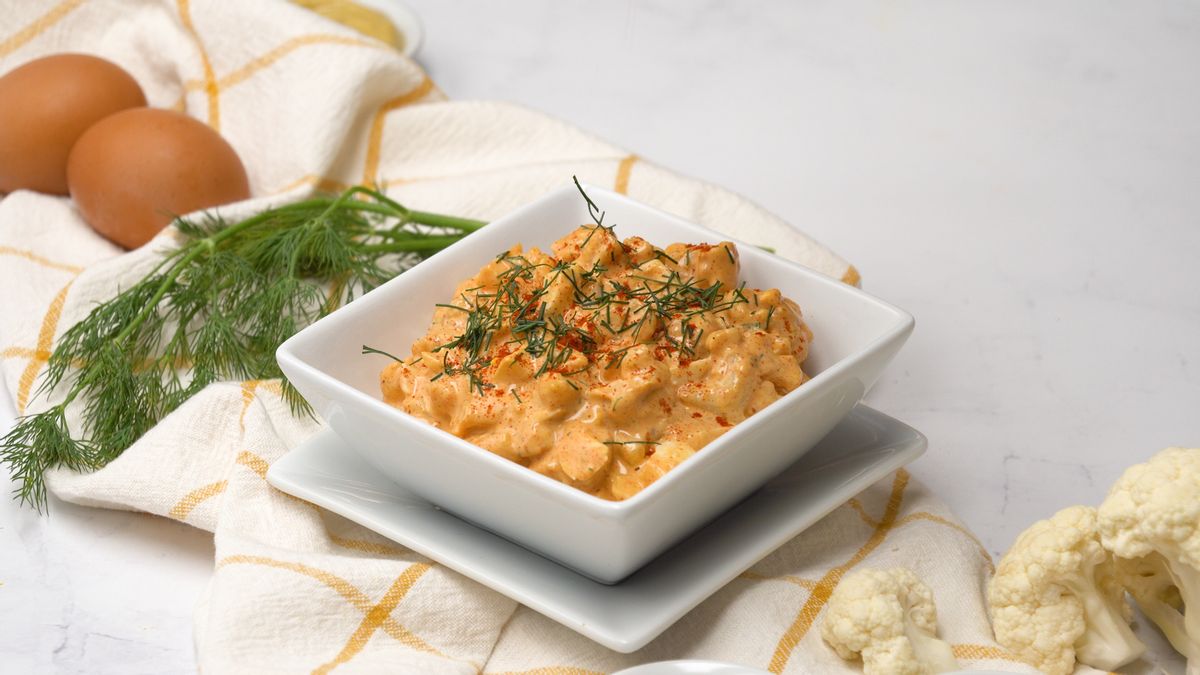 Who doesn’t love potato salad? This mock version may be sans potato, but everything else you can love about this side dish is classically delicious. Tangy mayo and dijon hold the components together, and it’s seasoned with fresh dill and paprika. You won’t miss the potatoes for a second!
