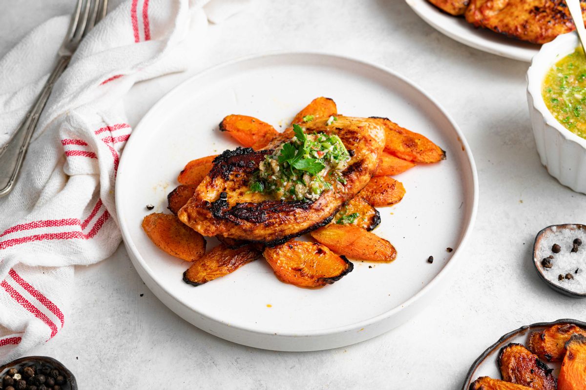 Zero Waste Keto Charred Chicken with Carrots and Chimichurri