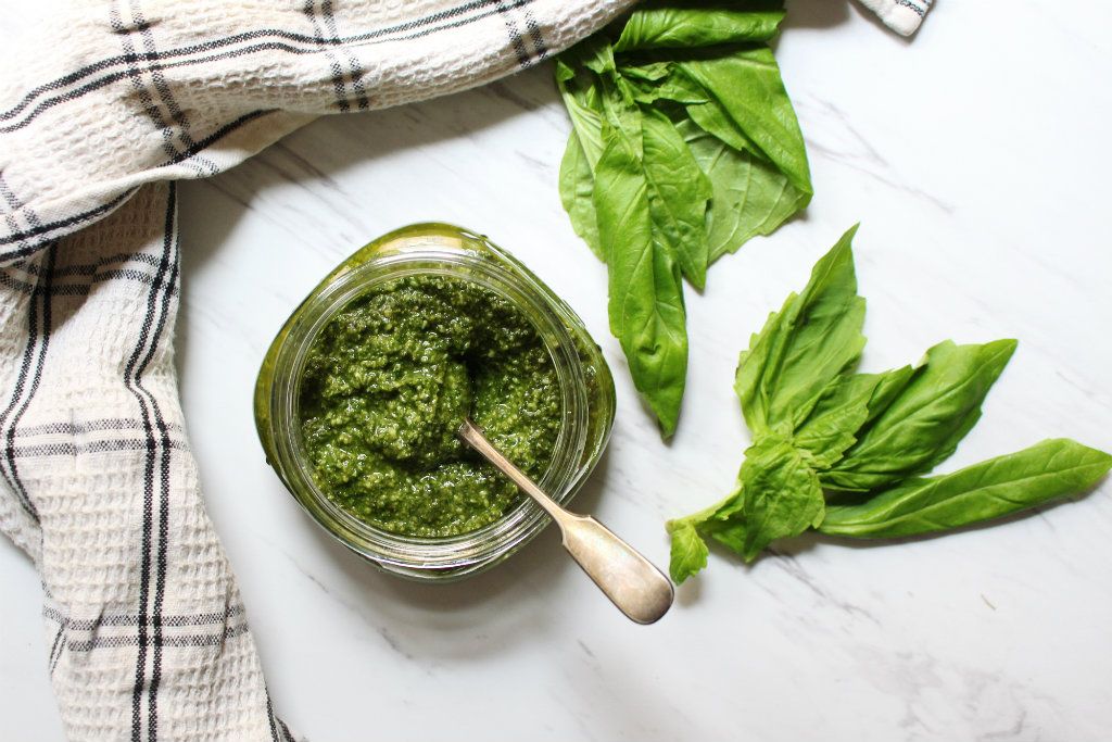 Freshly made pesto sauce is incredibly fragrant, flavorful, and healthy for you! Pesto sauce is very versatile: marinate your meats with it, loosen it with additional olive oil to toss veggie-noodles, or you can cook it with a touch of heavy cream to make a thicker sauce. Anyone can make this simple recipe for a high-end addition to their meal.