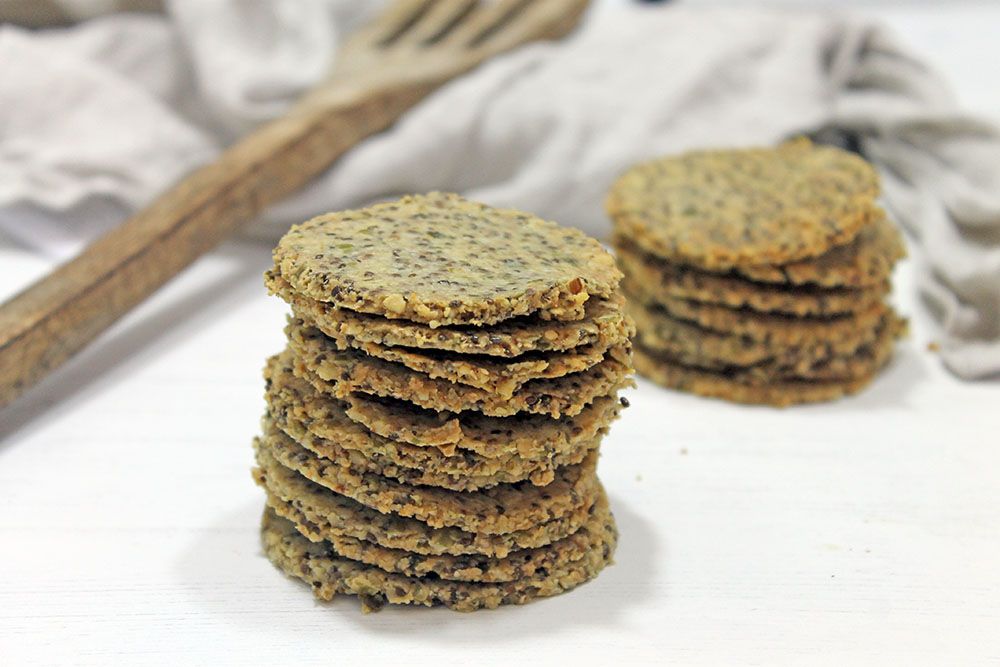 These thin and crispy keto crackers are perfect smothered with cheese or keto relish.