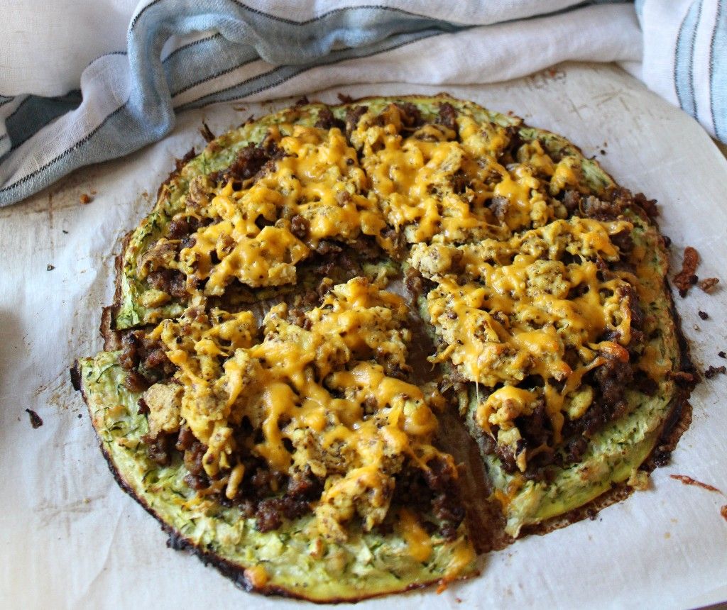 Low Carb Pork and Cheesy Egg Zucchini Pizza