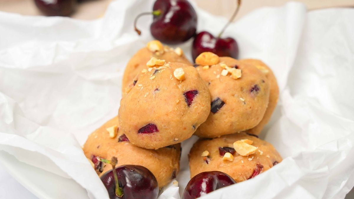 Remove the pits and chop cherries and add them to the mixture along with salt. Add sweetener of choice to taste. Form into 6 balls and place on a piece of parchment.Step 4
