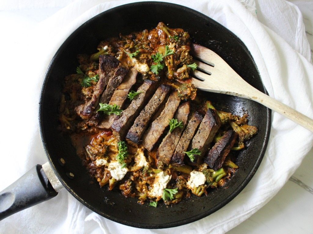 Keto Goat Cheese, Broccoli, and Steak Skillet