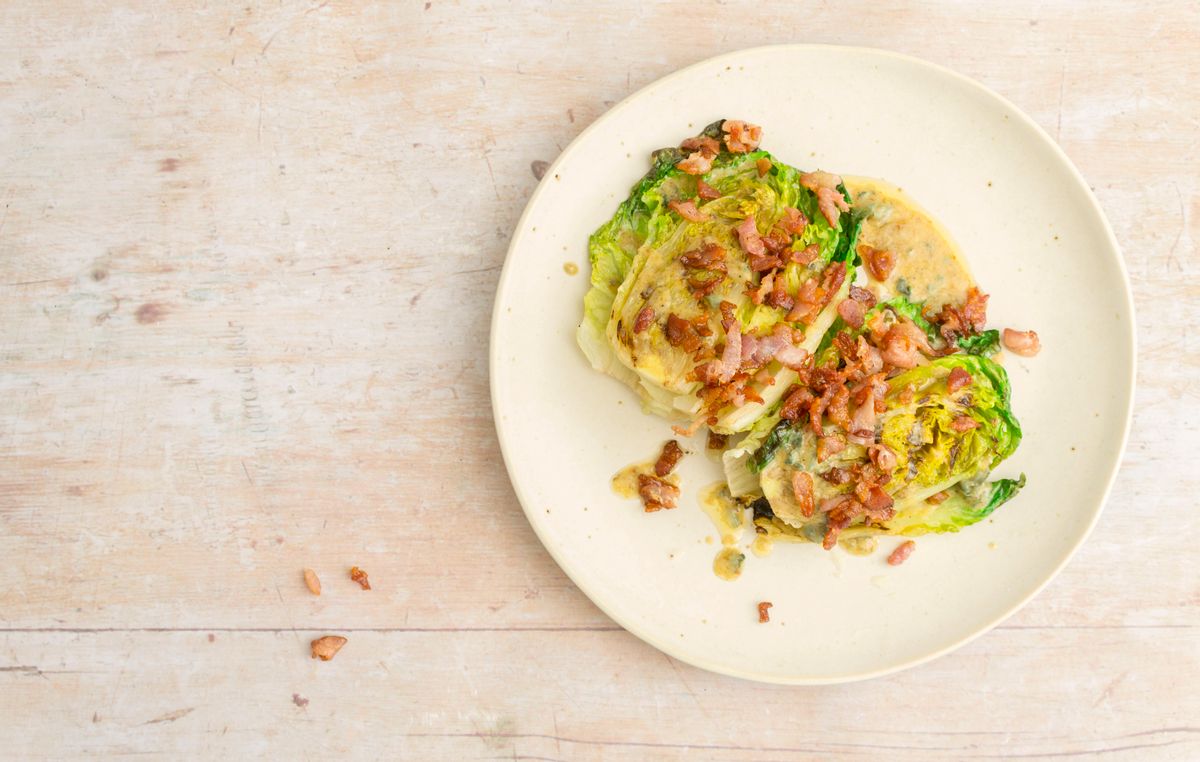 Keto Charred Lettuce with Blue Cheese and Bacon