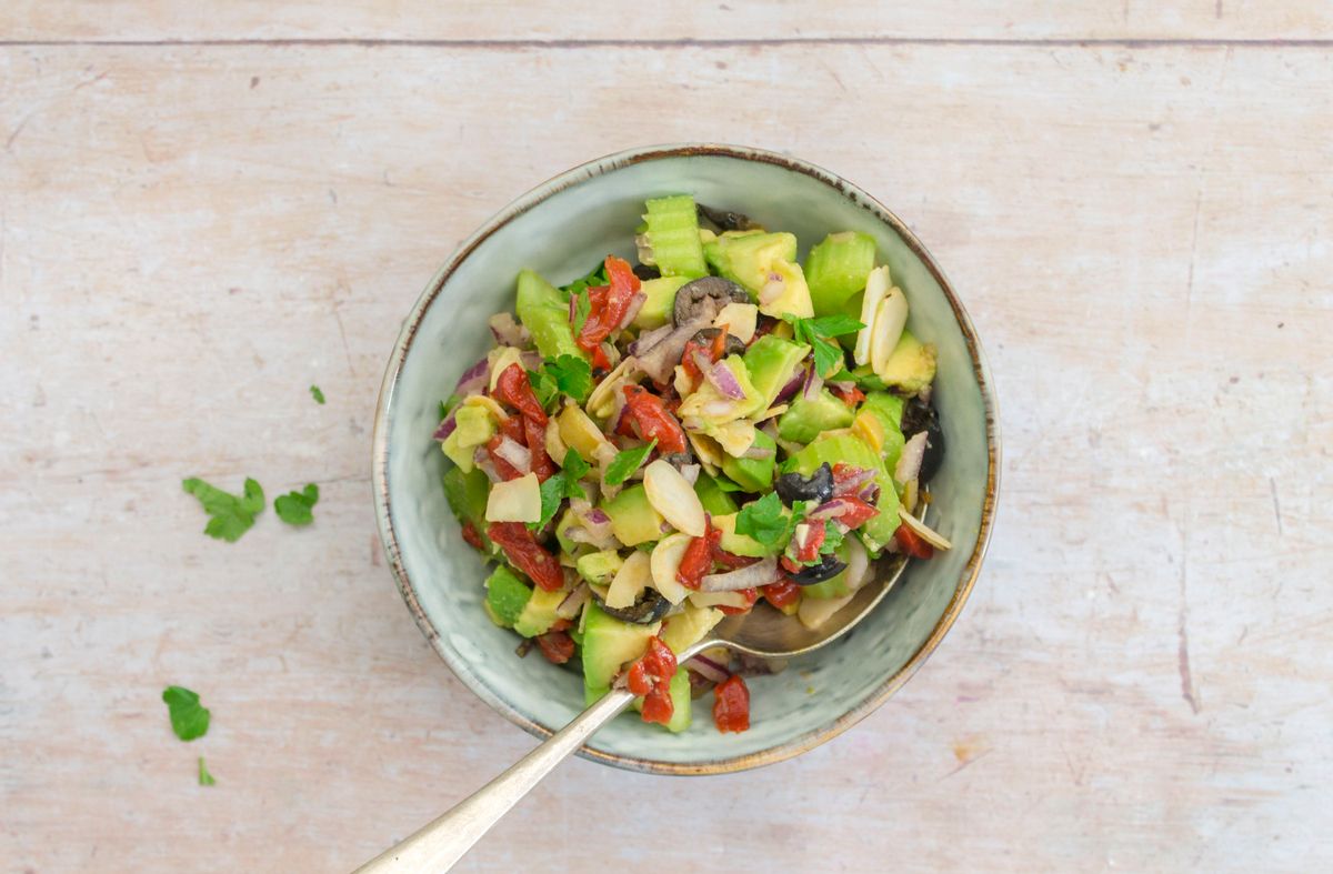 Keto Celery, Avocado, Pepper and Olive Salad