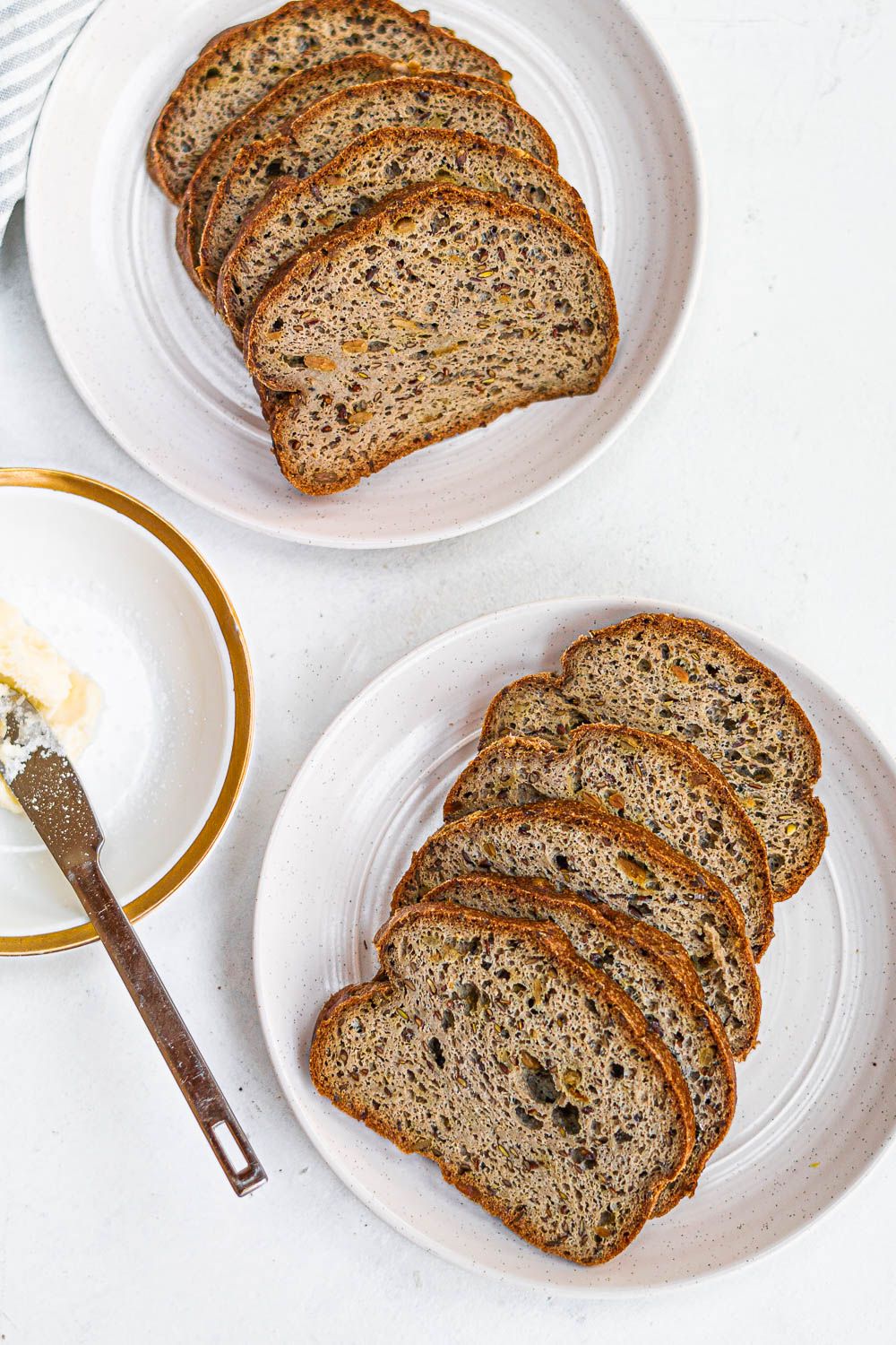 This is a delicious low carb “wheat” bread recipe that is made using no gluten or wheat flour. A sturdy yet tender dough is made with almond flour, psyllium husk, eggs, and water. The rise of this bread is incredible! The Keto Wheat Bread is studded with whole flax seeds and roasted sunflower seeds; you will love this low carb bread recipe that is also Paleo-friendly.