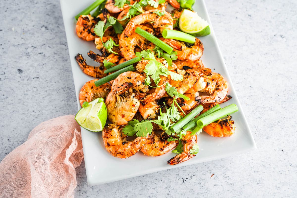 In a mixing bowl, combine the shrimp, chopped Thai chilies, minced garlic, fish sauce, kosher salt, brown sugar sweetener, the juice of one lime, and olive oil. Mix to combine. Allow marinating for a couple of hours before cooking up to overnight.