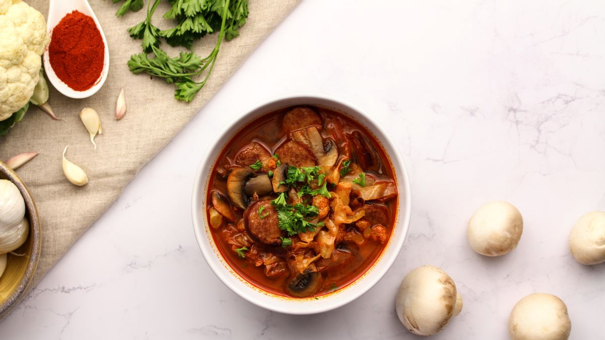 Exceptionally simple recipe & comes together easily. I made a few modifications with what was at hand: Smoked venison sausage & curly kale. Instead of using full 1-1/2 Tblsp paprika in the recipe, served stew with dollop of sour cream & dusted paprika over it. Venison sausage gave stew plenty of flavour. Definitely going to become a Winter staple!