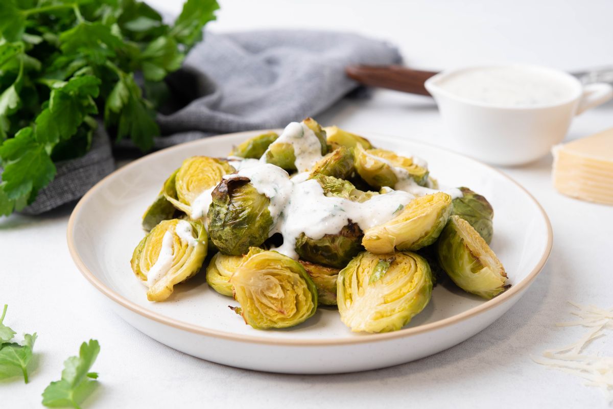The Mediterranean Keto diet includes lots of low-carb vegetables and occasional dairy, among other things. These delicious sprouts with parmesan cream are an excellent side to your favorite Mediterranean meat or fish recipes. Crispy sprouts are baked with a good drizzle of olive oil and then served with this creamy parmesan sauce for a beautiful dish, packed with flavor and healthy fats. It is an excellent side dish, but it can also serve as a quick and healthy snack. These sprouts are best served warm, directly from the oven, but they also taste great the next day. Enjoy!