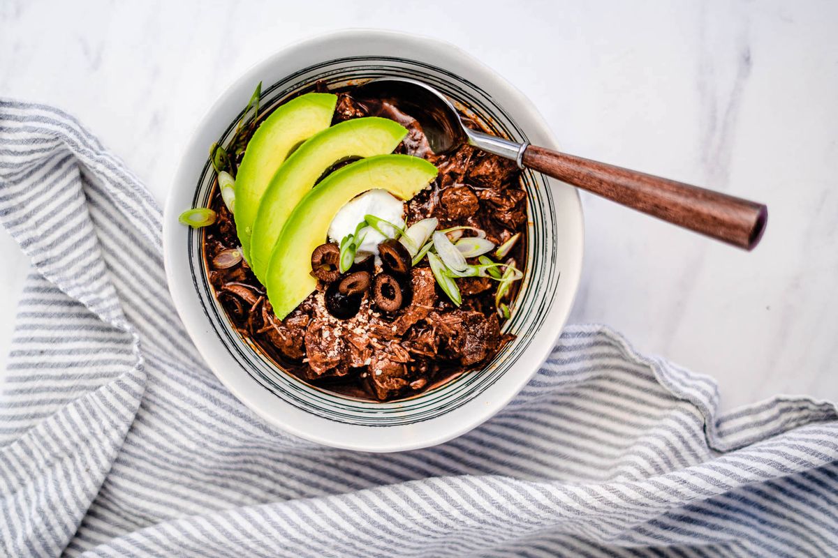 Low Carb Texas-Style Chili would make for a great dish fit for the cold winter months. Delicious beef chuck is simmered in a mixture of onions, garlic, tomato paste, browned together with chili powder, cumin, dried oregano, smoked paprika, onion powder, garlic powder, and bay leaves. The spices lend warm flavors to the entire dish. The final bowls are topped with creamy diced avocados, spicy diced jalapenos, and chopped cilantro. However, this chili can be a blank canvas for all sorts of toppings.
