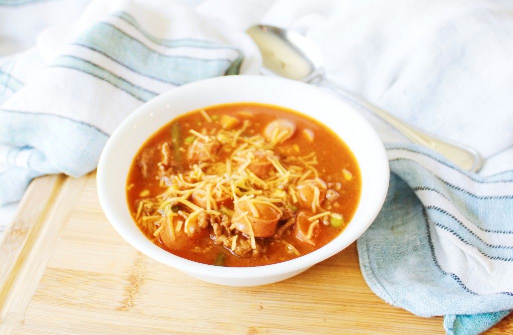 This recipe is the best Keto hot dog chili you’ve ever eaten. Adding hot dogs to chili might seem a little strange at first, but it’s fun American nostalgic comfort food. It’s a family-friendly recipe that kids will really enjoy as well. Your best chili ever is made with ground beef, a blend of Low Carb frozen veggies, and hot dogs. This chili is thickened with cheddar cheese, so the chili has an extra-creamy broth that’s very flavorful. Add your favorite toppings to your bowl of chili for lunch or dinner and enjoy! You can also use this recipe for meal prepping.