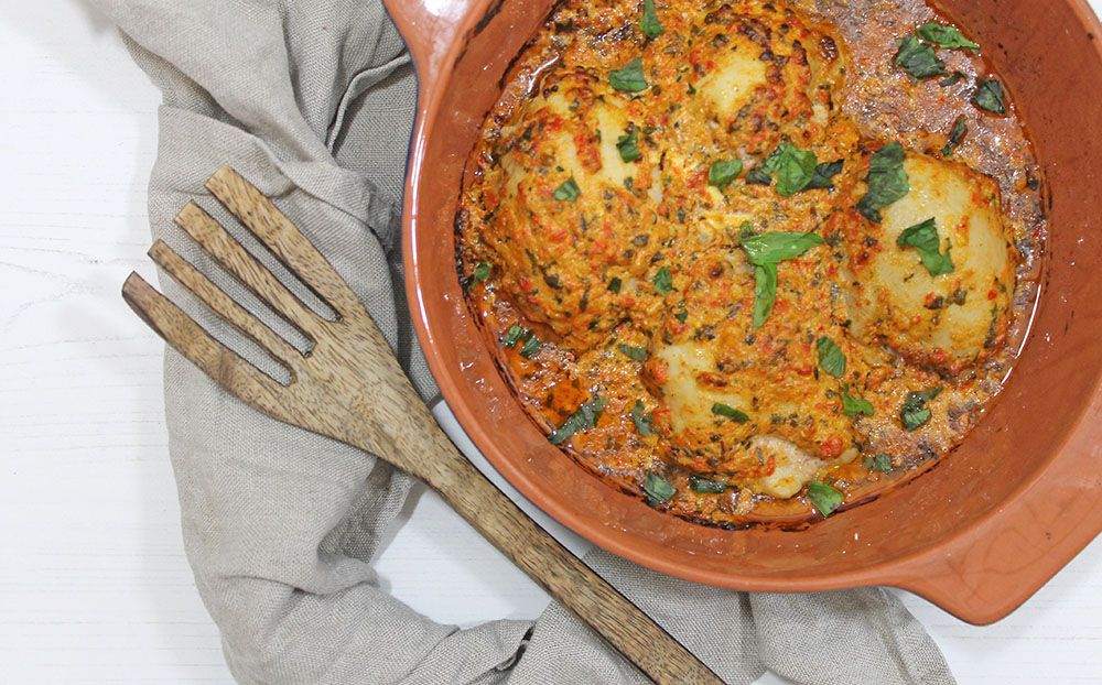 These chicken thighs are baked in our keto red pepper pesto and creme fraiche to create an aromatic and creamy sauce - perfect served with an avocado salad or some steamed broccoli.