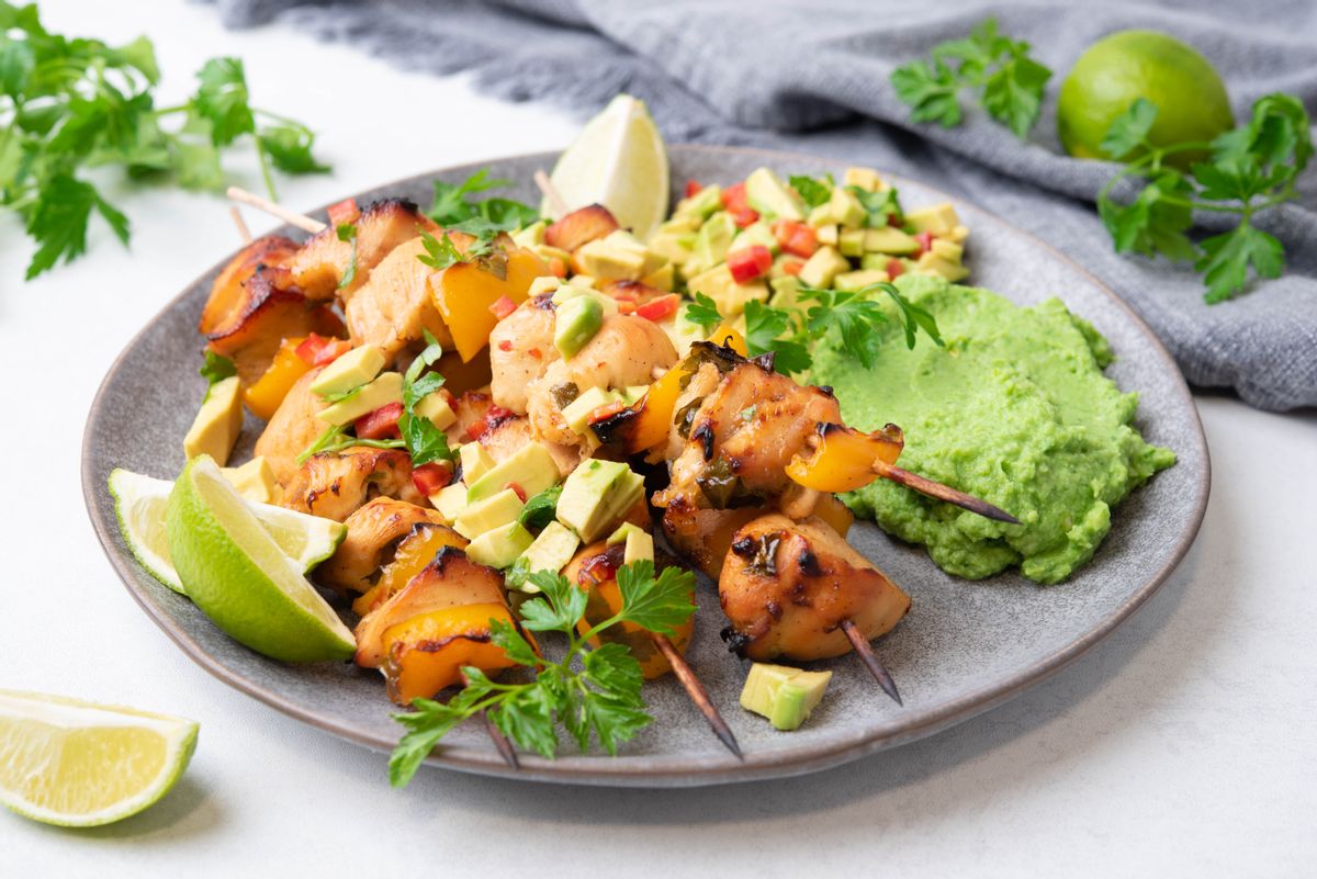 Healthy Keto recipes can be delicious and fun to make. This recipe combines crispy chicken skewers, tender broccoli puree, and zesty avocado salsa to create a perfect lunch or dinner option - with enough protein and healthy fat to keep you full for hours. Broccoli is an excellent source of vitamin C, vitamin K, iron, potassium, and fiber. Combined with healthy avocado, lean chicken breast, and heart-friendly olive oil, this dish makes a perfect, nutrient-dense meal for the entire family. You can also replace the chicken meat with the same amount of turkey or even salmon. Please note that the total preparation time includes the time needed to marinate the meat.